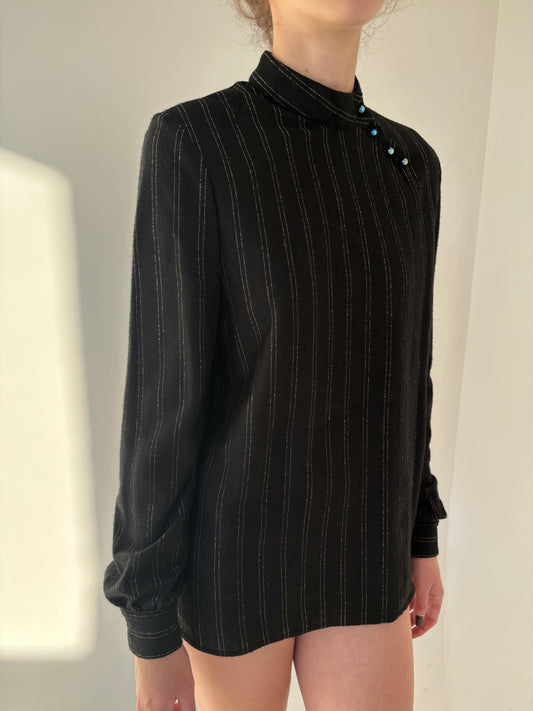 Cămașa vintage neagră din lana extrem de fină de la zi la seară