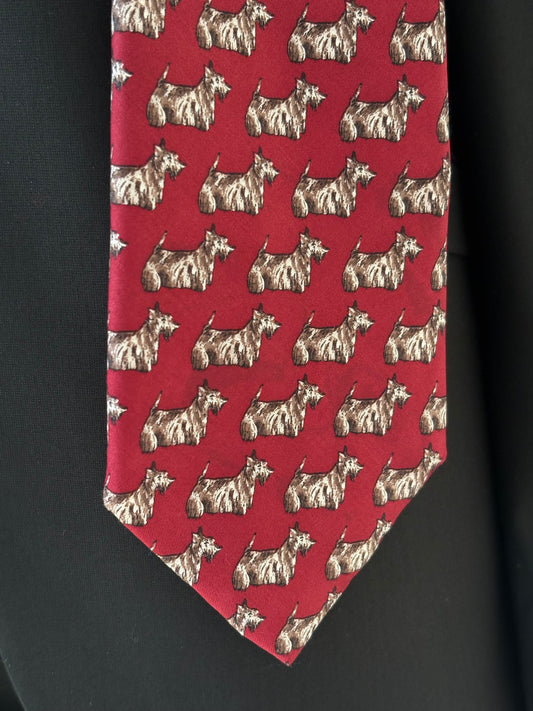 Cravata burgundy cu print cu cățeluși din mătase naturală
