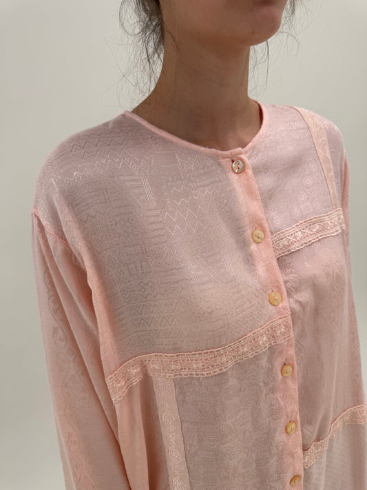 Cămașa vintage roz pudrat cu tiv dantelat
