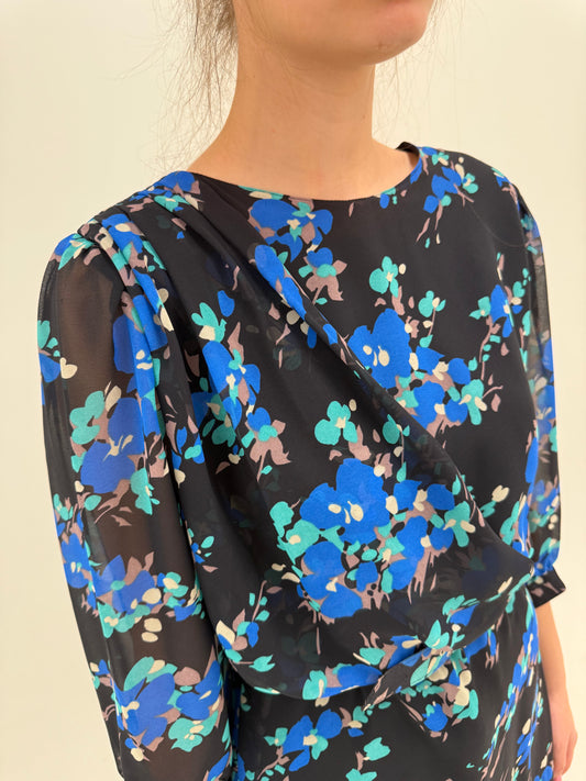 Bluză vintage cu talie marcată și mâneci evazate cu inserție de dantelă macrame