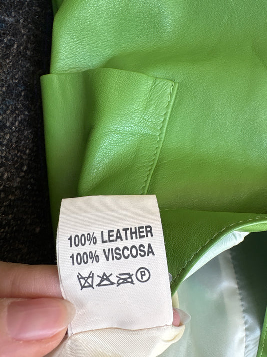 Cămașa verde crud din piele naturală moale în croi ușor cambrat