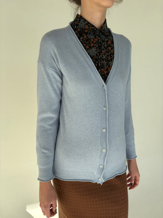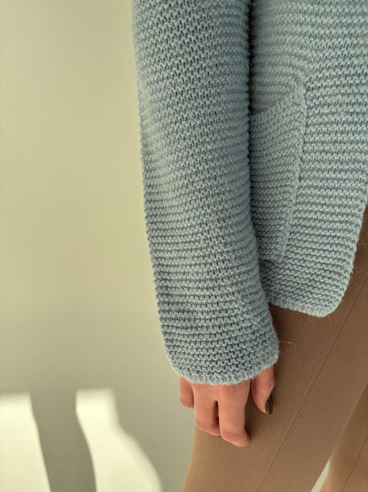 Cardigan baby blue din lana merino extrafina de gramaj mare