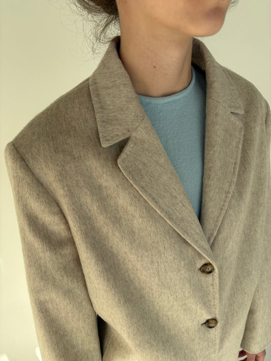 Pardesiu italian light nude din stofă excepțională de lana cu aspect ușor de blăniță
