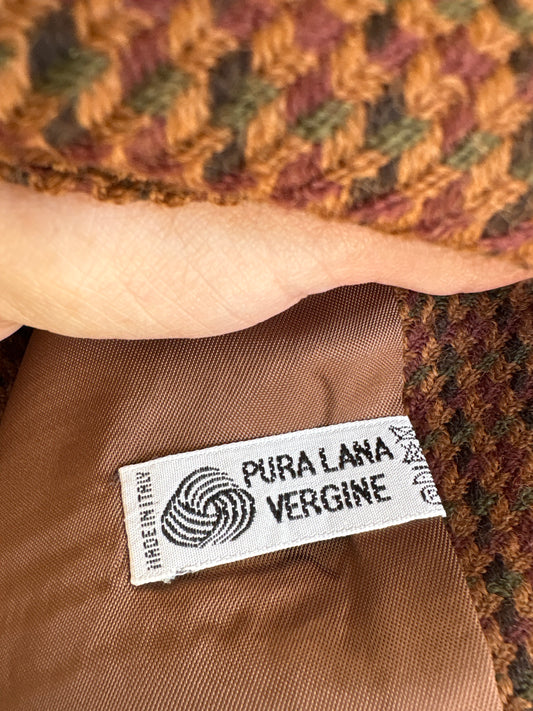 Sacou italian pied de coq chocolate brown și ivoire din lana extafina