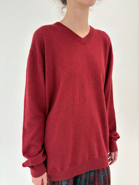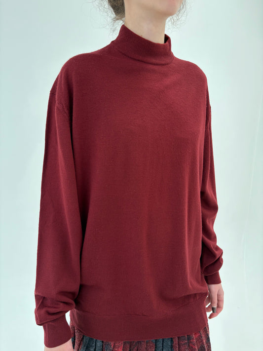 Pulover dark red din lana extrafina si bumbac de gramaj mare în anchior