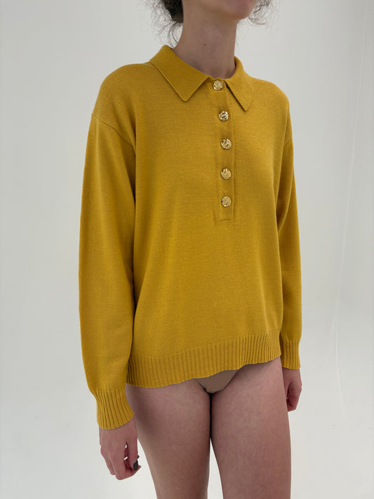 Pulover polo vintage mustard yellow din lana extrafina de gramaj mare