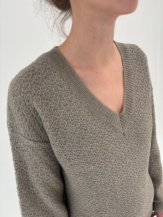 Pulover tall warm gray din lana fină texturată în croi lejer și anchior