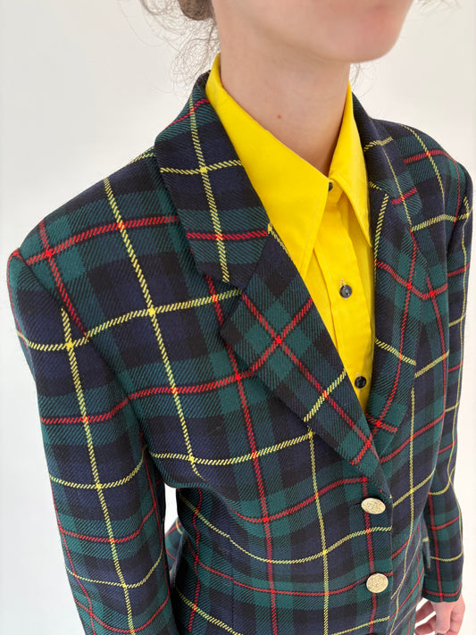 Sacou italian din Tartan gros de lana pura certificată ușor cambrat