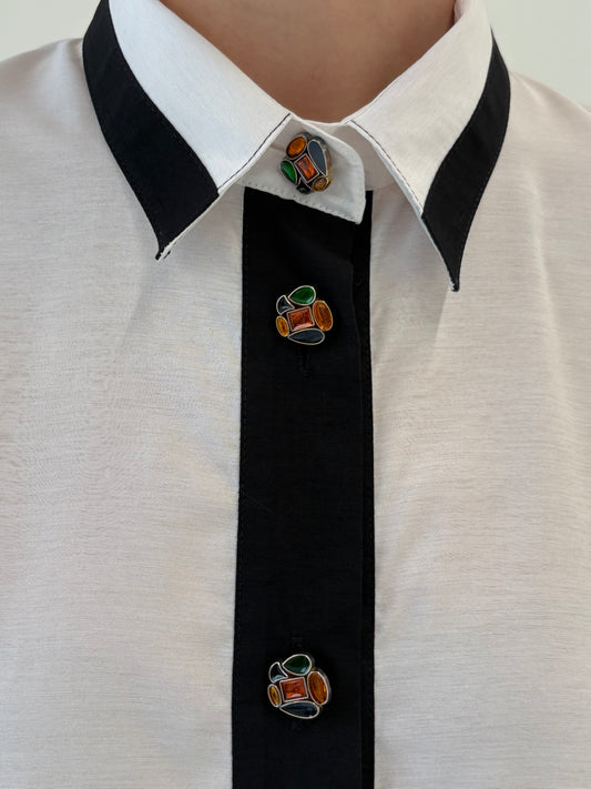 Oversized/ XXLCămașa vintage cu paspoal negru și nasturi decorativi