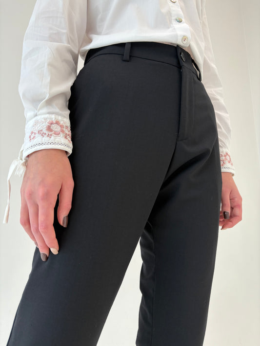 Pantaloni țigaretă mom fit din lana extrafina pura certificată