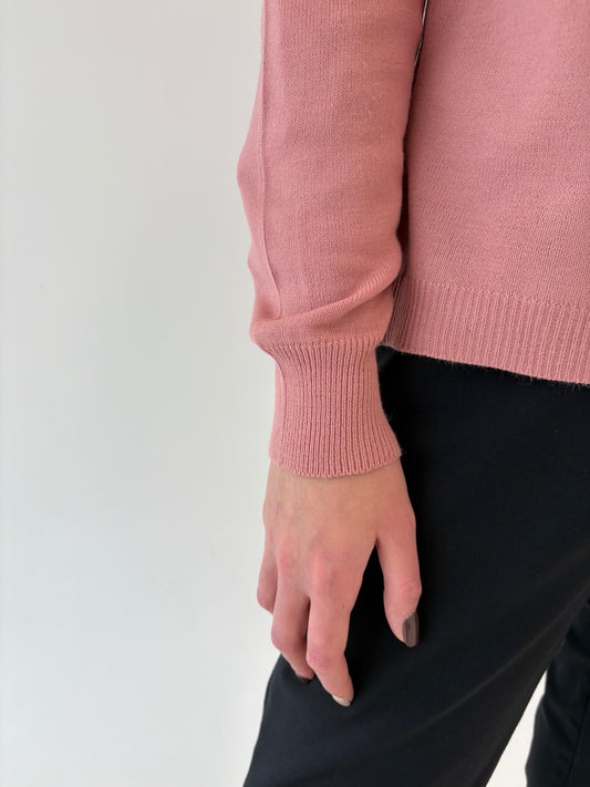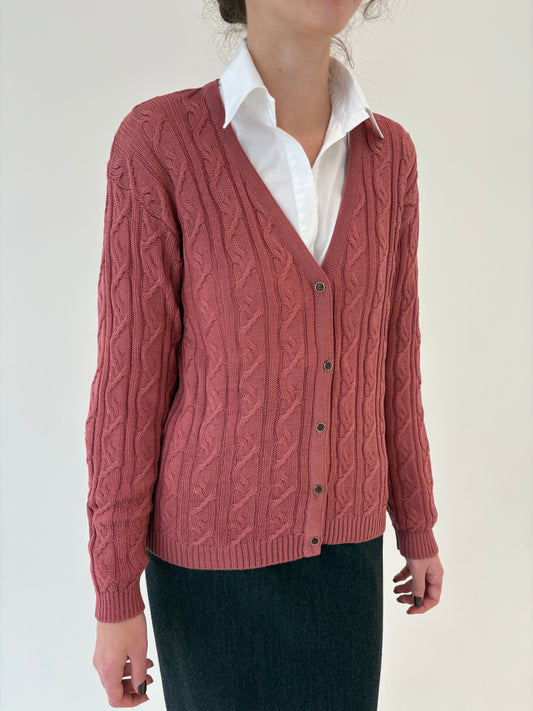 Cardigan vintage cu torsade dusty pink din lana plină extrafina