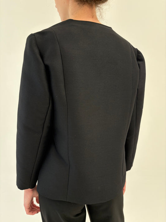Sacou negru excepțional în croi retro modern din lana perlata structurată