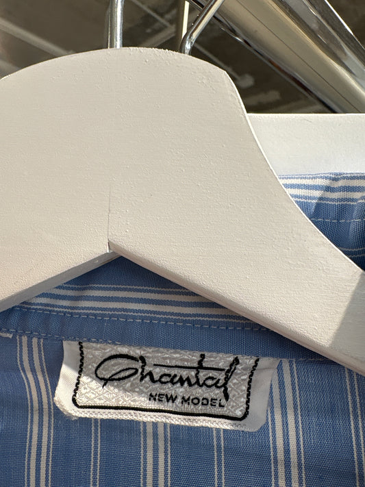 Cămașa premium baby blue cu dungi verticale din poplin plin de bumbac