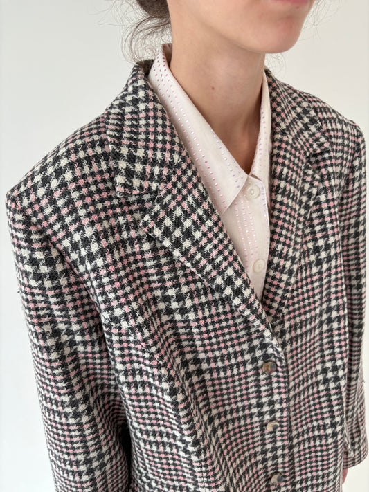 Sacou și tweed de lana extrafina în carouri roz pudrat