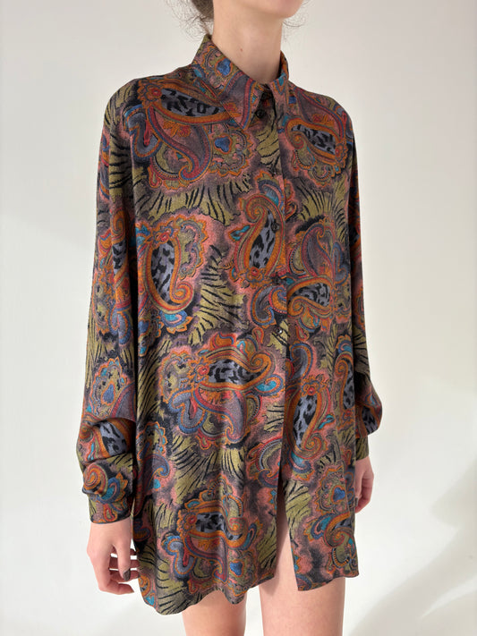 Cămașa vintage plus size cu print paisley în culori superbe