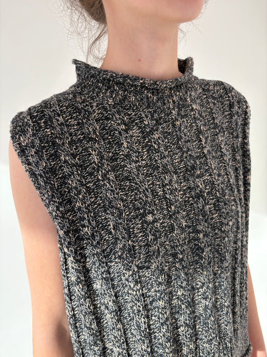 Maleta ribbed de gramaj mare camel și charcoal gray din lana extrafina