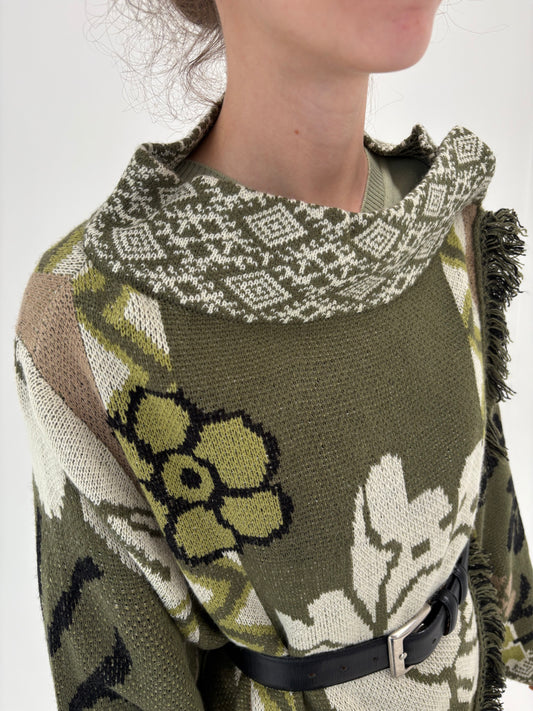 Pulover Sage green din lana extrafina în anchior de gramaj mare