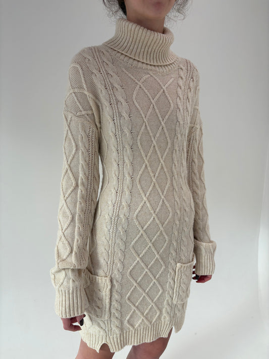 Rochie tip maleta tall butter white în croi lejer din lana extrem de fină plină