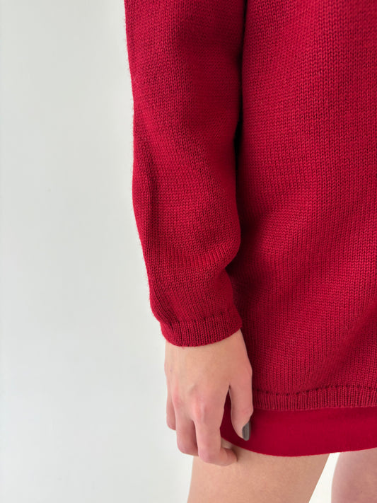 Fustă mini cherry red din lana pura virgină extrafina certificată