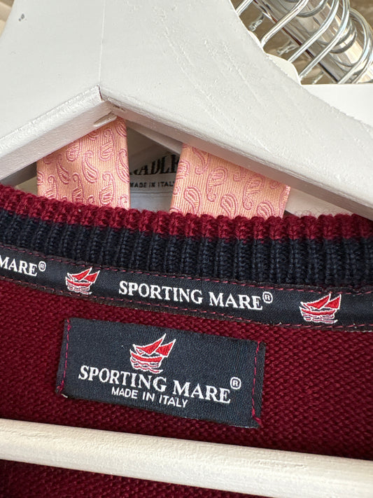 Pulover vintage burgundy din lana extrafina cu broderie și nasturi bijuterie