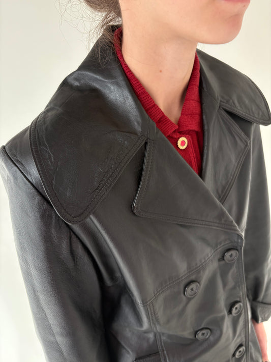 Pardesiu cambrat din piele naturală cu revere supradimensionate si închidere dublă