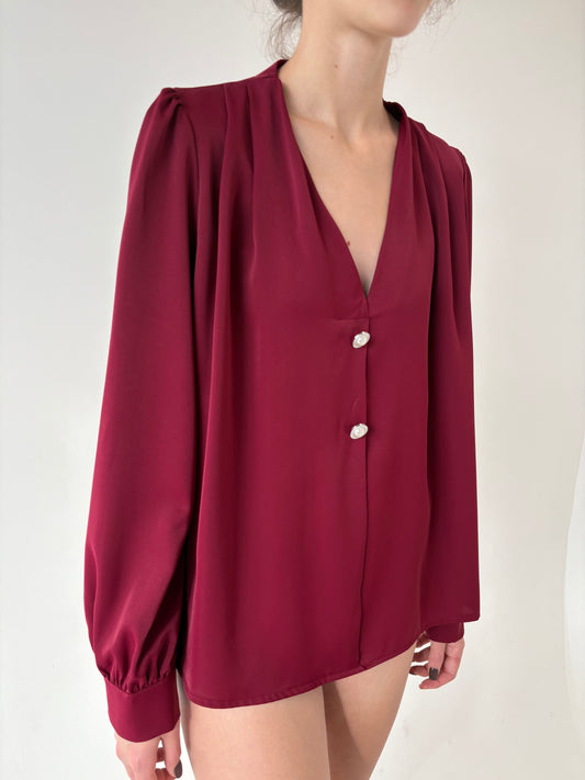 Cămașa burgundy în croi amplu cu nasturi decorativi de la zi la seară