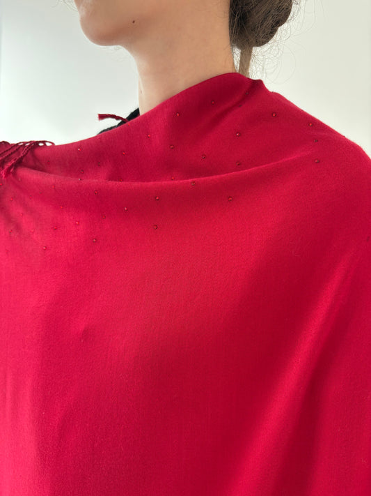 Sal XXL burgundy din material natural cu aplicații delicate