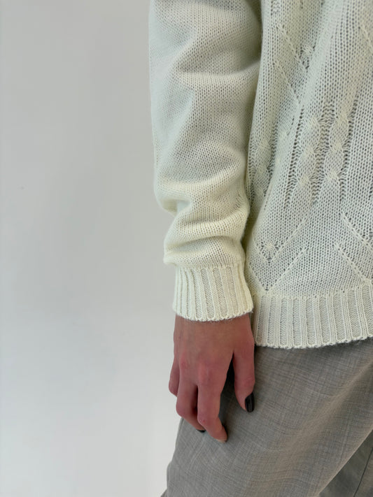 Cardigan vintage butter white cu torsade din lana extrafina plină