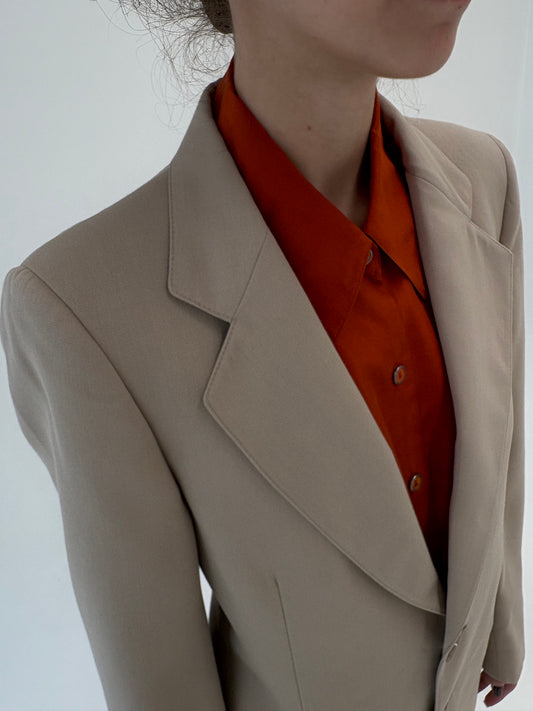Sacou cambrat din stofă excepțională de lana și cașmir powder pink
