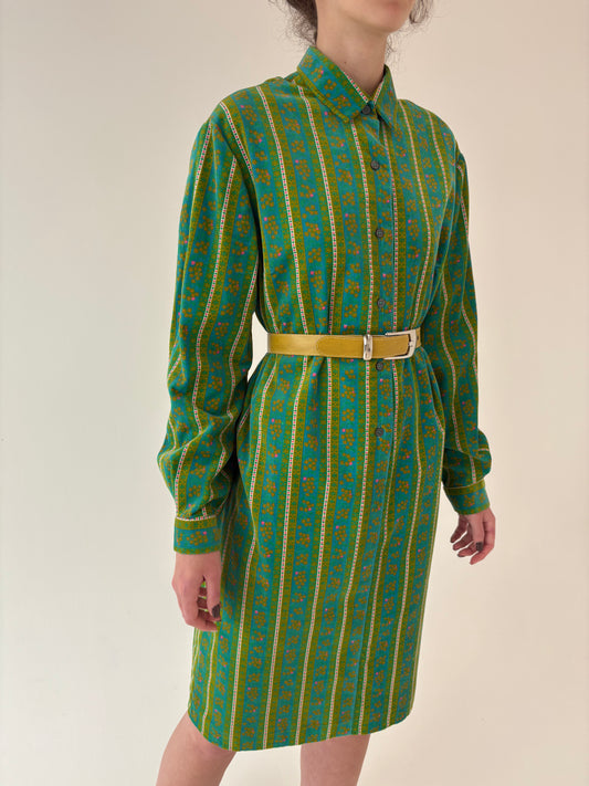 Rochie vintage tip cămașă din corduroy în culori tari cu centura inclusă