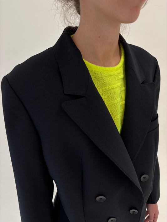 Sacou vintage petite Navy blue cu închidere dublă din lana extrafina