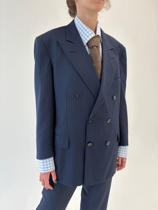 Deux piece retro modern în dungi fine verticale din lana extrafina
