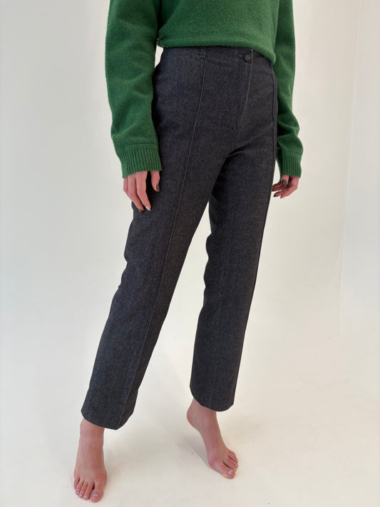 Pantaloni țigaretă cu talie ultra înaltă din lana extrafina cu mătase naturală