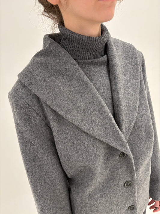Jacheta luxury Madeleine din stofă groasă extrafina de lana cu revere late