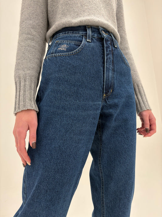 Jeans vintage gros darker wash mom fit cu talie ultra înaltă