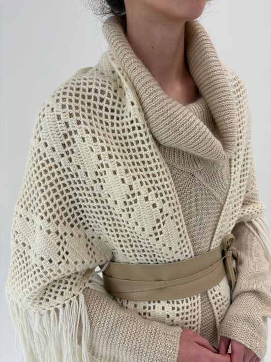 Capa vintage superba tip macrame lucrată manual din lana extrafina