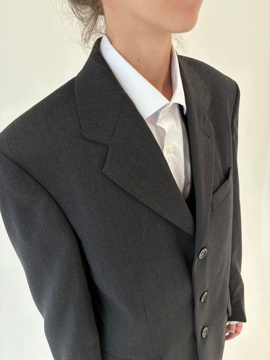 Costum italian charcoal gray din 3 piese și lana extrafina