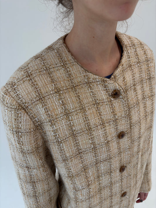 Sacou in stil Chanel din tweed gros excepțional în nuanțe de camel
