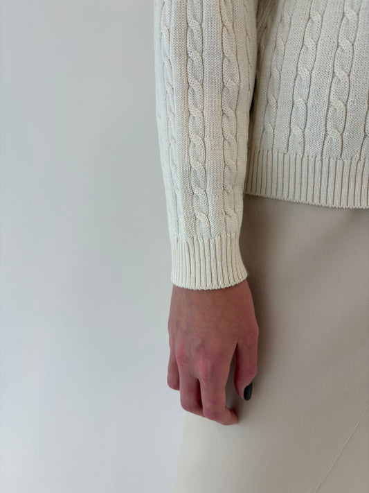 Cardigan butter white din lana merino extrafina de gramaj mare cu torsade