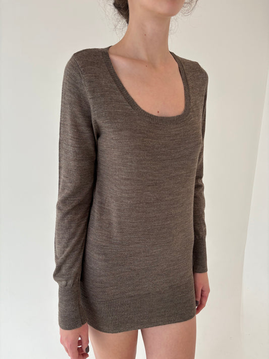Pulover dark nude cu manșete ultra înalte din lana extrafina