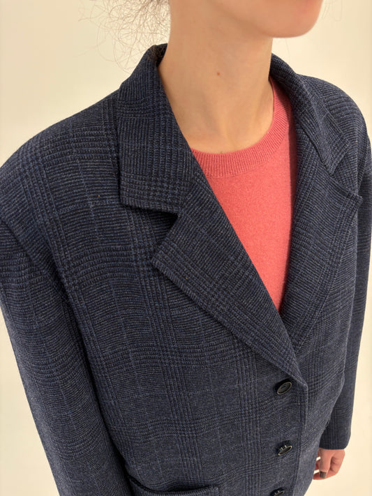 Sacou petite luxury Pierre Cardin din stofă plină de lana în carouri