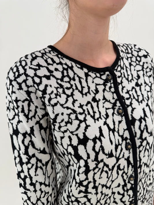 Jacheta alb negru din tricot de lana extrafina