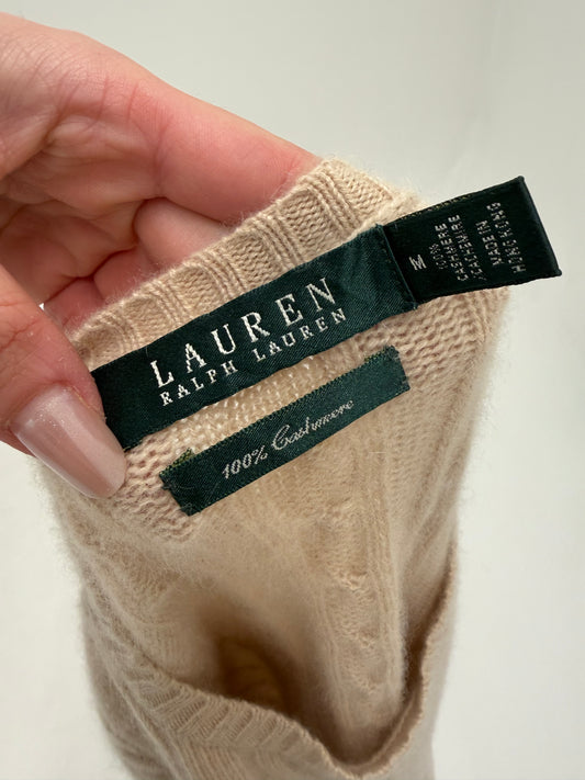Pulover Ralph Lauren din cașmir The Iconic cable knit light camel