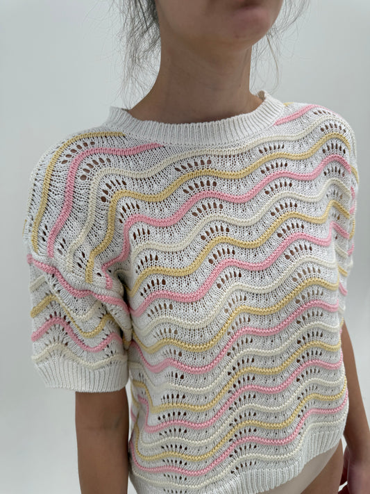 Top vintage din tricot excepțional în stil Missoni și culori pudrate