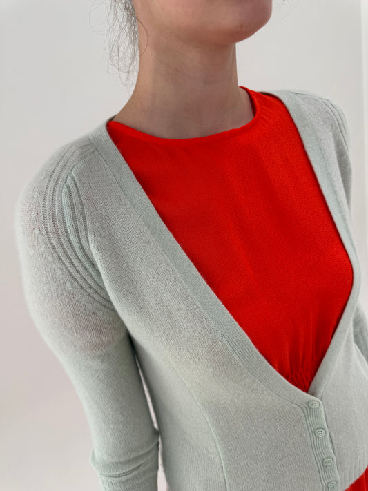 Cardigan Max&Co by Max Mara mint green din cașmir cu mânecă 3/4