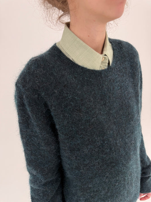 Pulover din mohair dark green crew neck