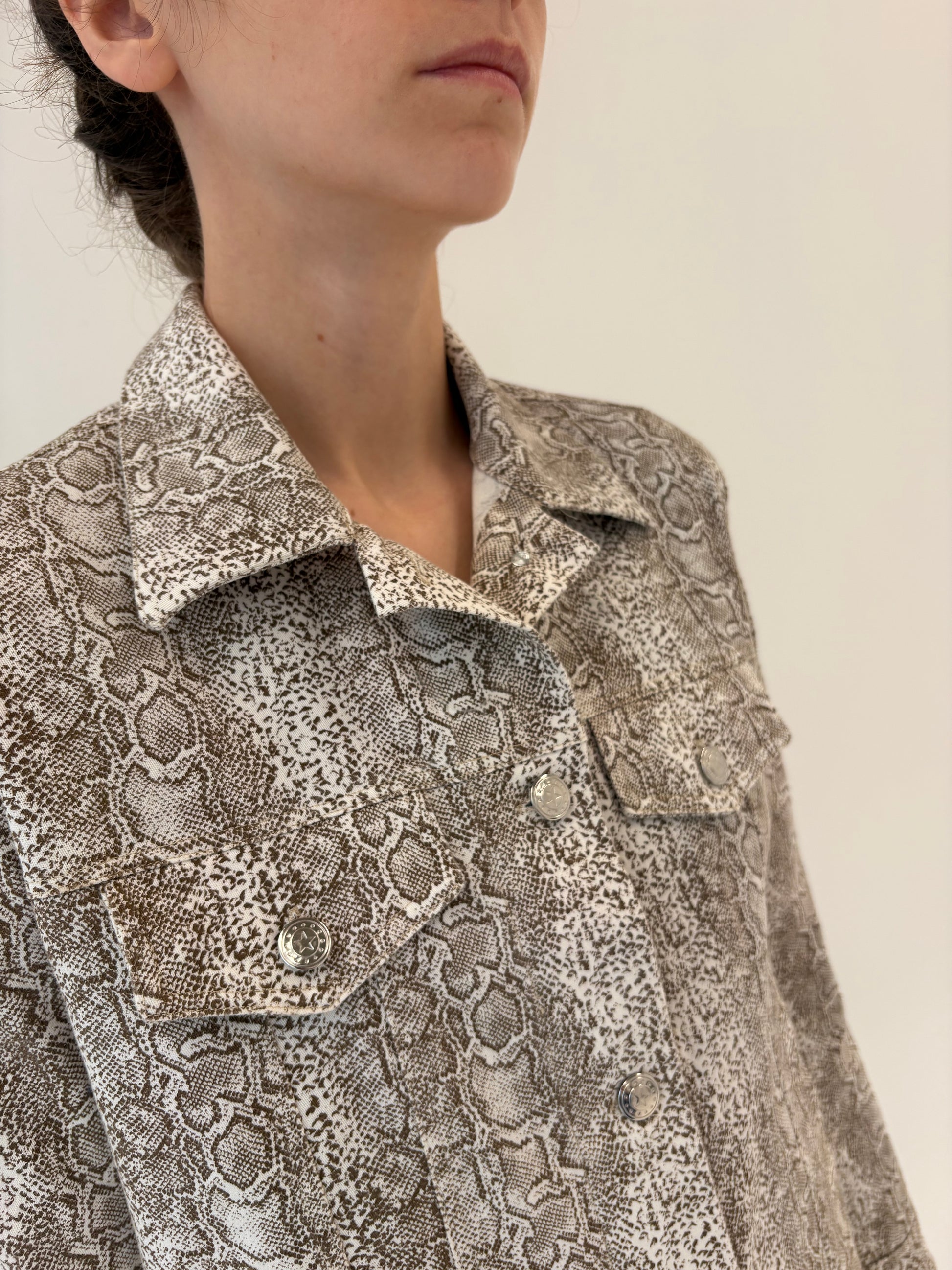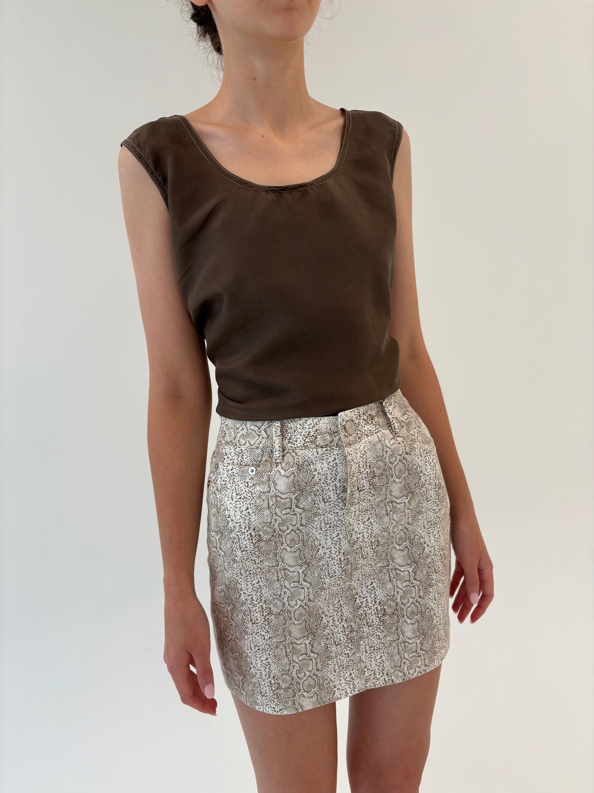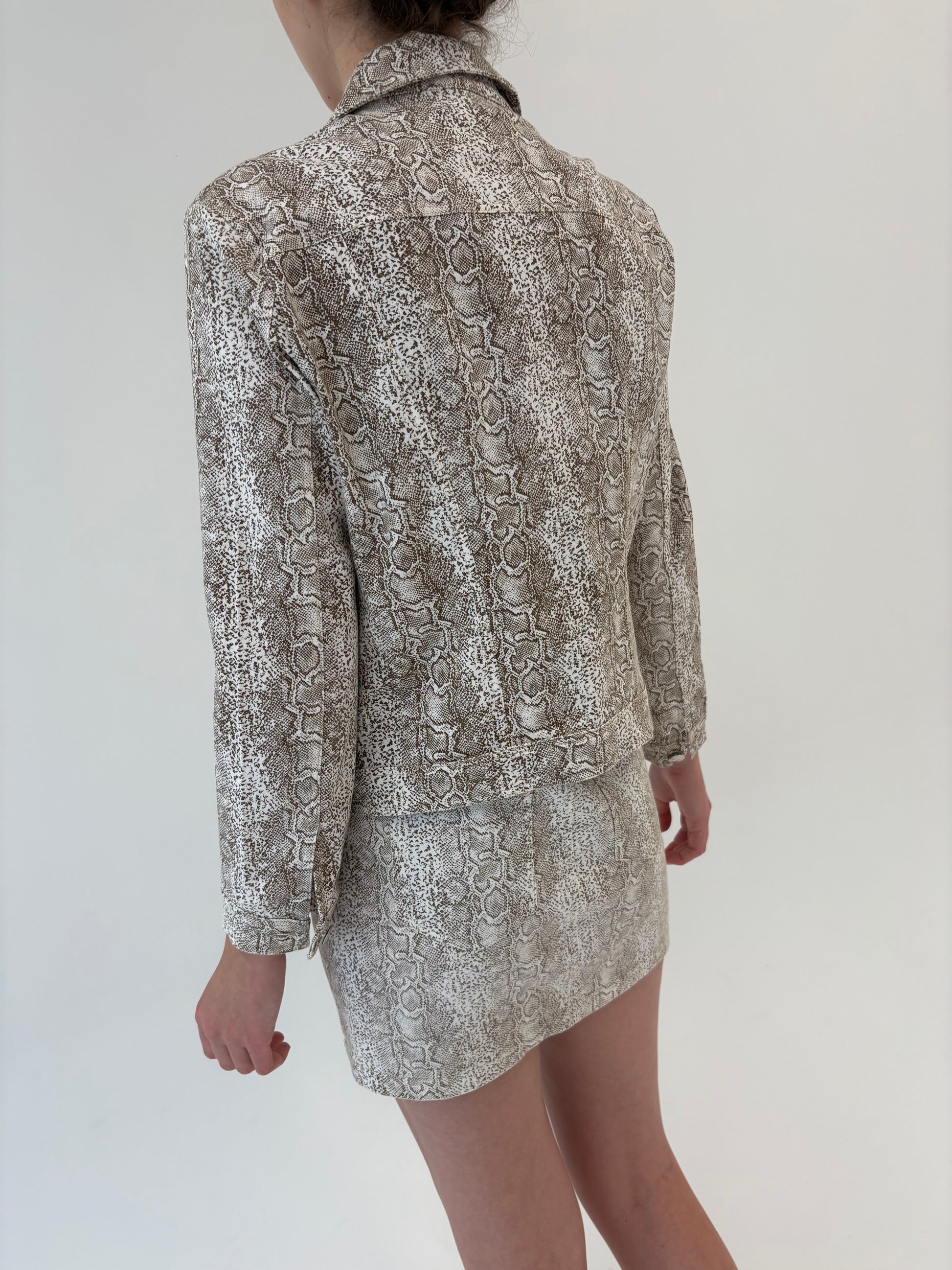 Set snake print ivorie cu chestia colate brown din bumbac modelator