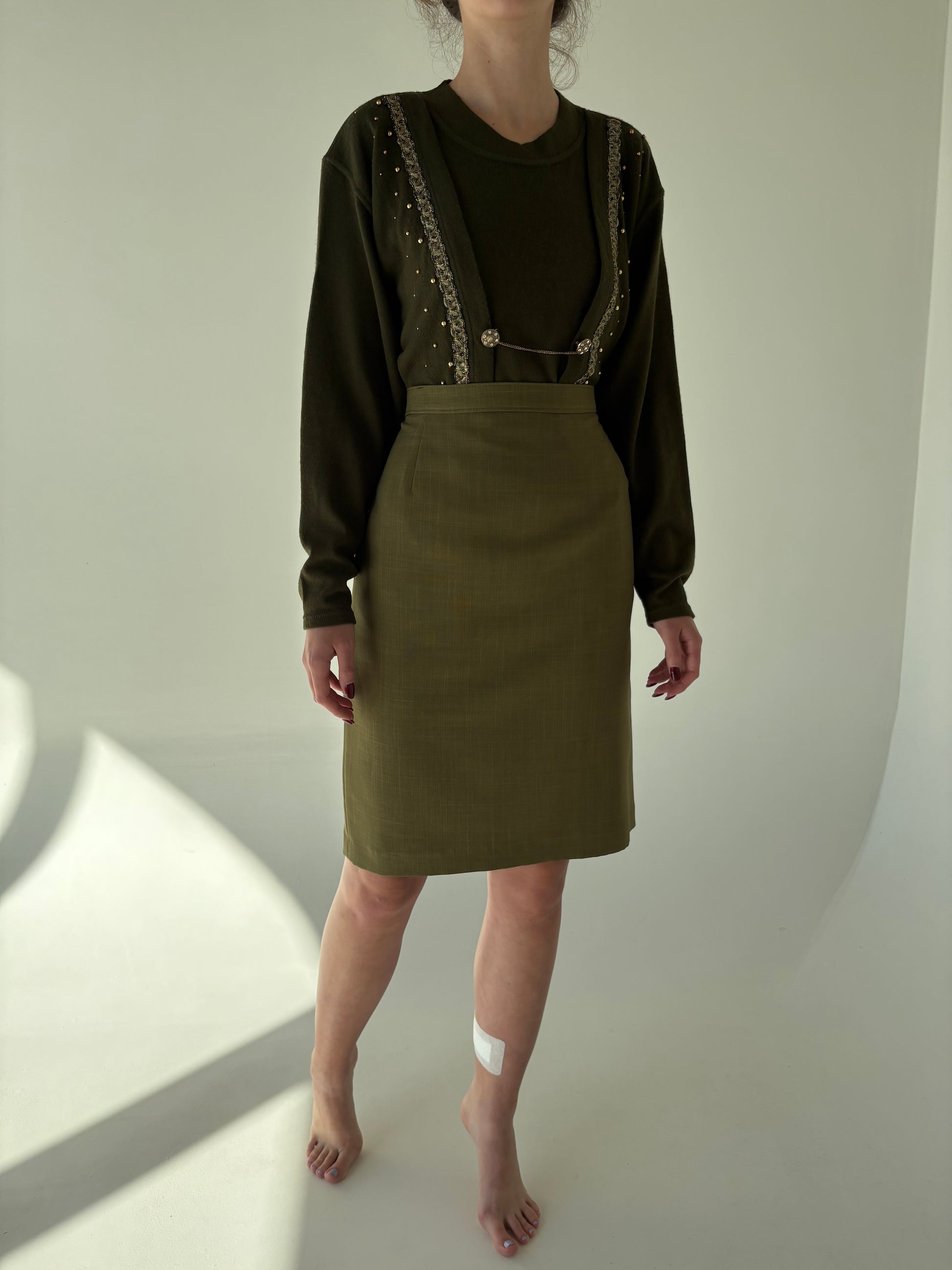 Fustă kaki din mix de lana extrafina conică cu talie ultra înaltă marcată