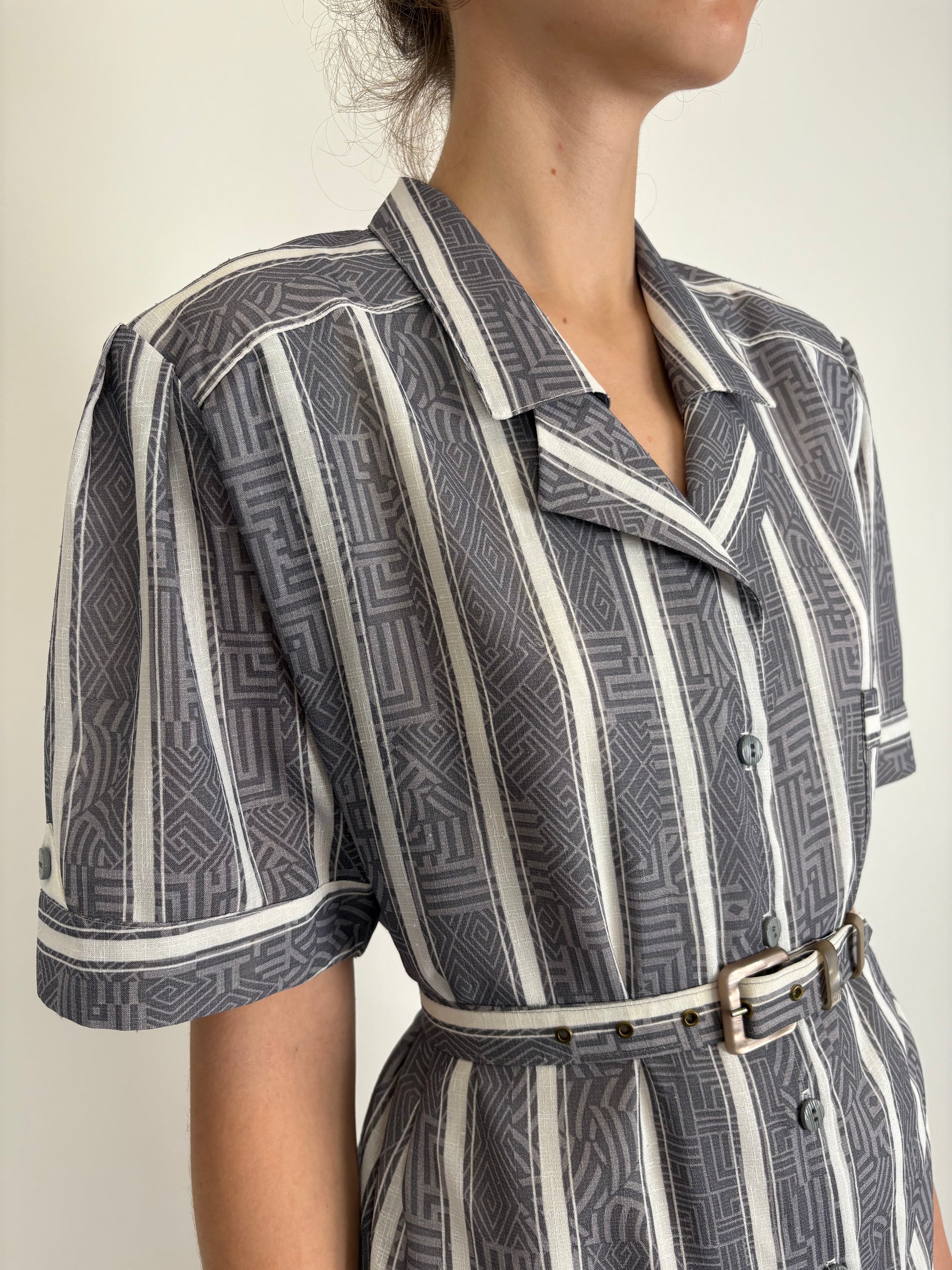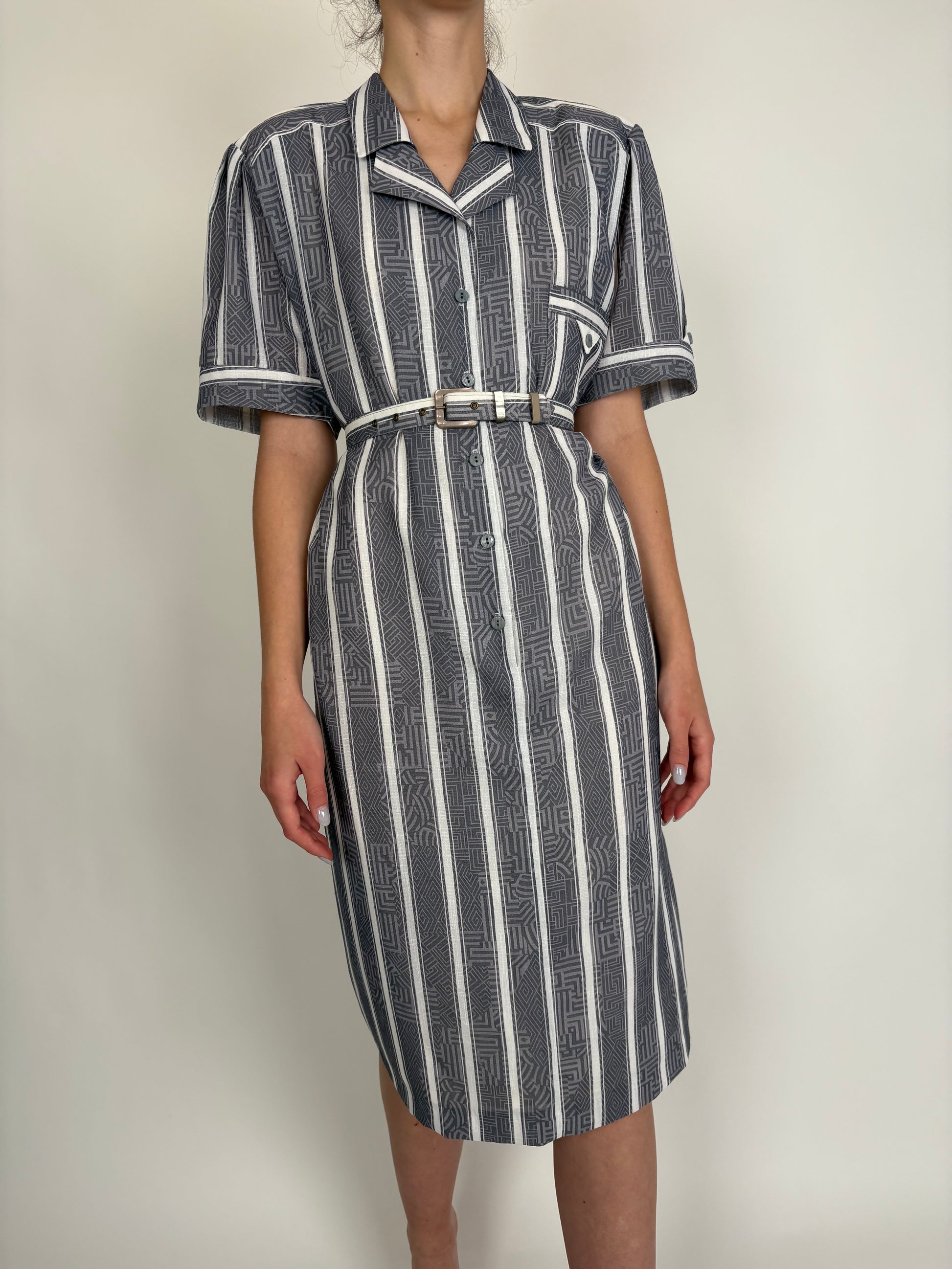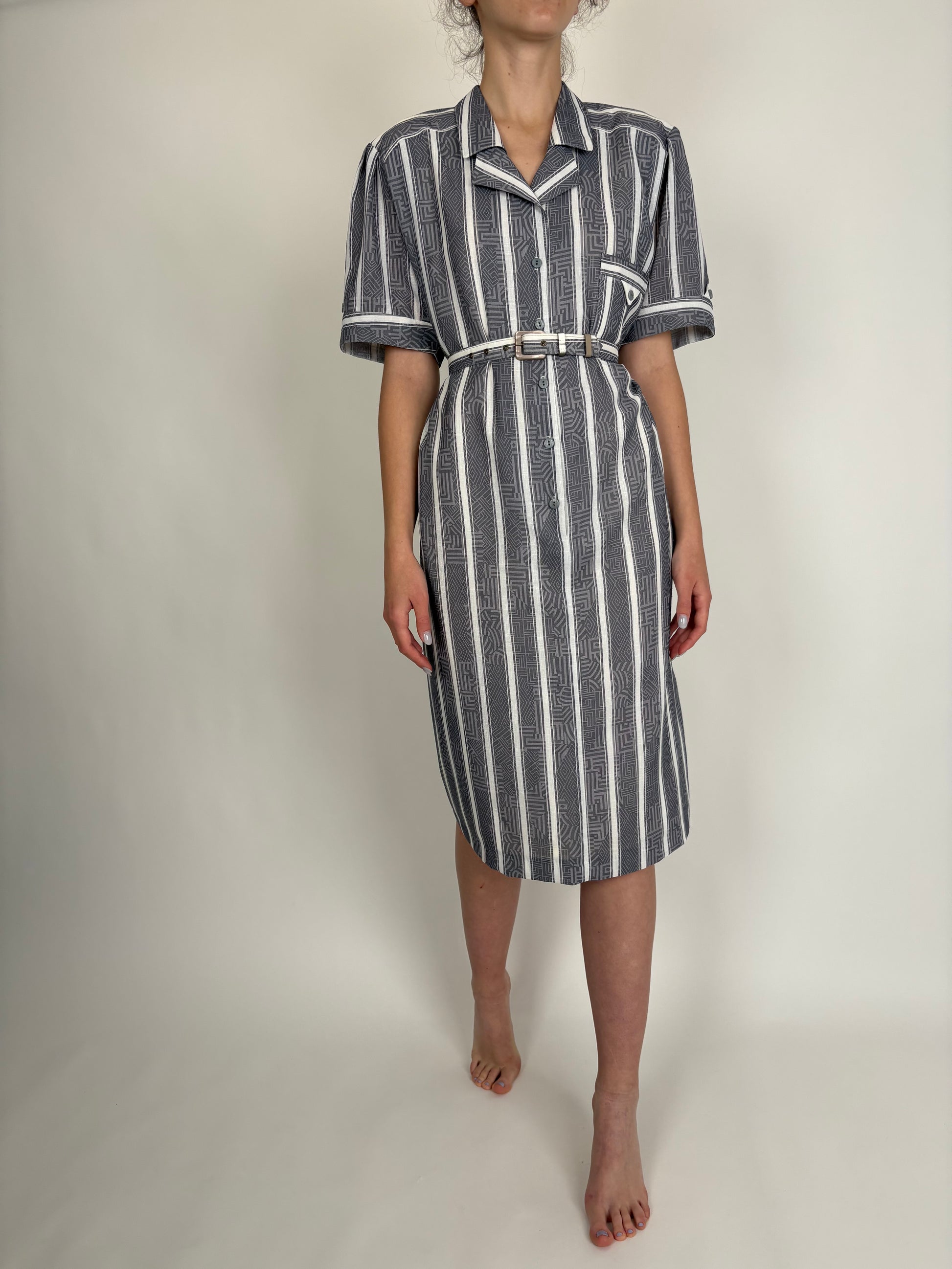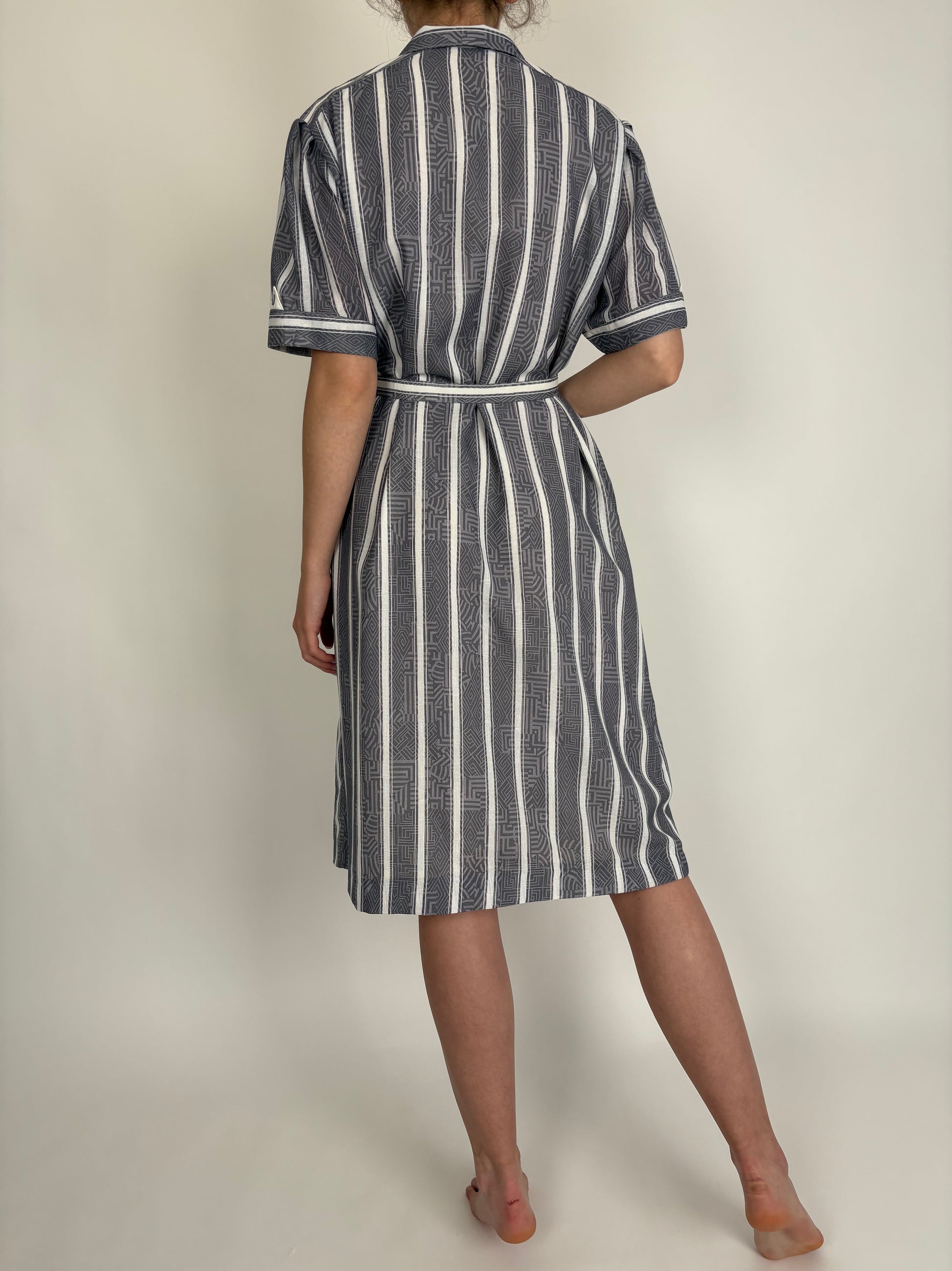 Rochie vintage în dungi verticale cu talie marcată reglabilă