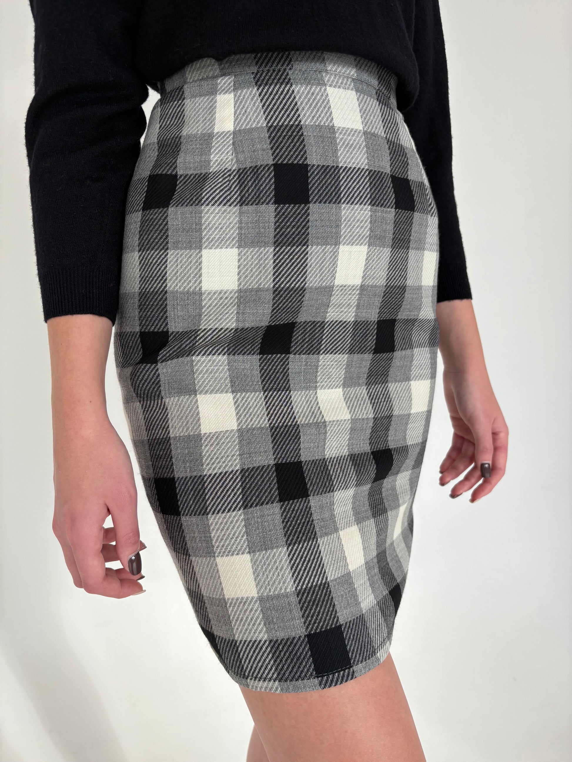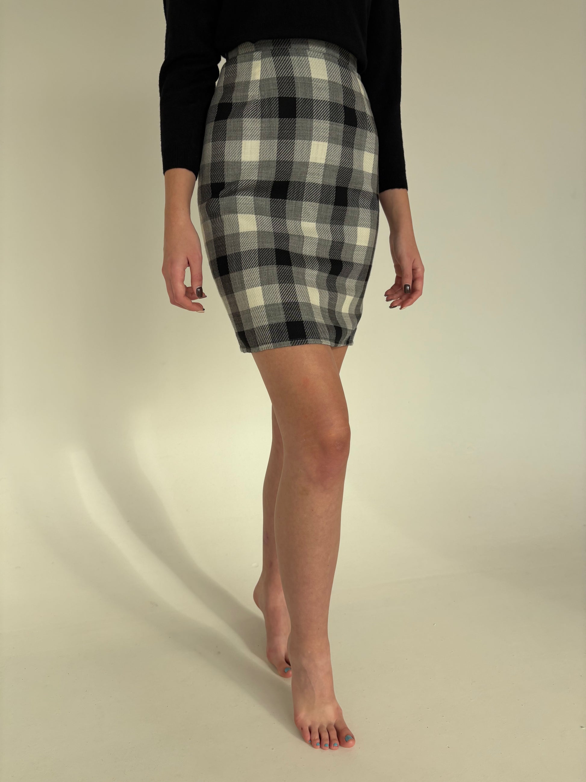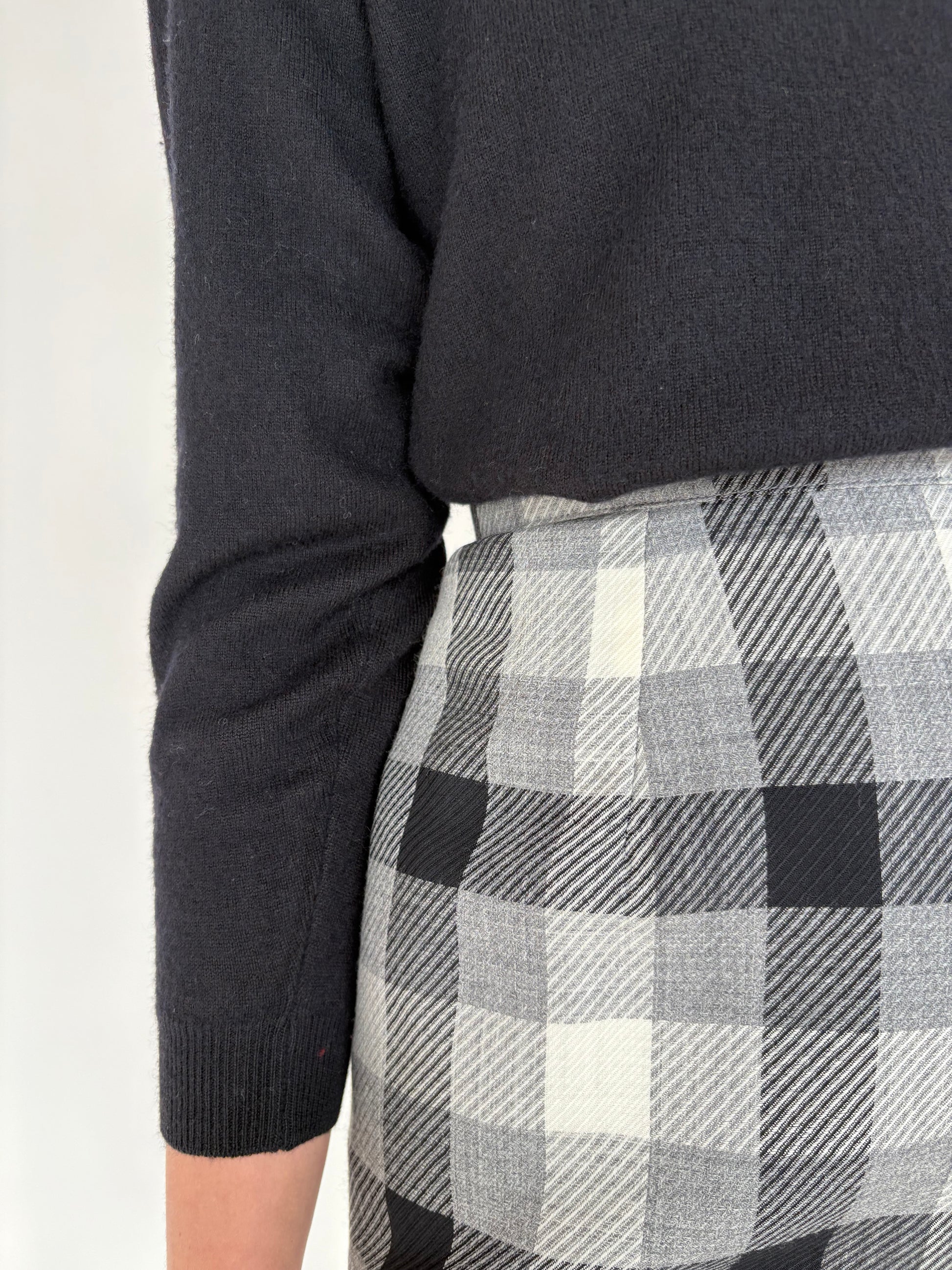 Fustă conică cu talie ultra înaltă în carouri din lana extrafina plină